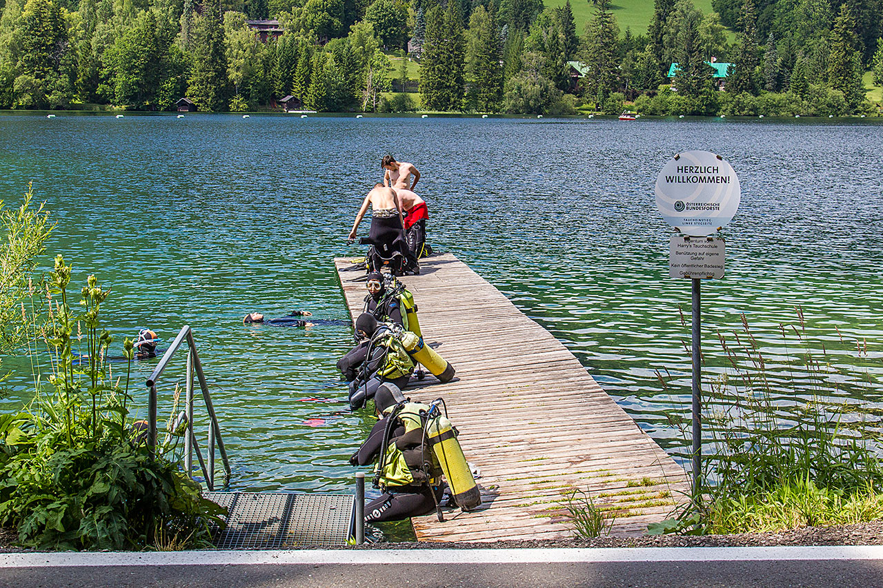 Der Erlaufsee ist ein beliebtes Gewässer für Taucher, da er sauberes Wasser, klare Sicht und reizvolle Unterwasserlandschaften bietet. Es gibt zwei Tauchschulen. Die Tauchzone erstreckt sich über den steirischen Teil des Erlaufsees von Straßenkilometer 3,1 der Bundesstraße 71 bis zur Einmündung der Großen Erlauf (Steinbach).